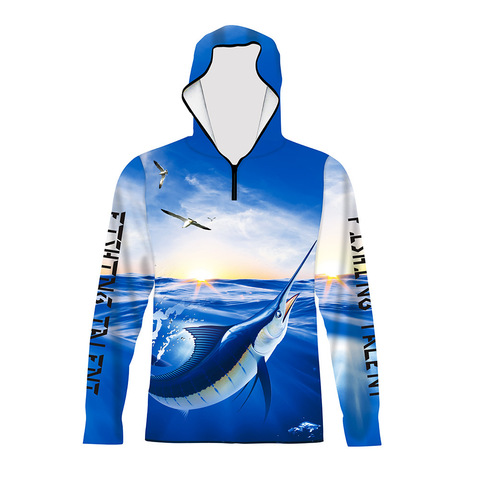 Özelleştirilmiş düşük adedi süblimasyon baskılı hızlı kuru UPF 50 UV koruma balıkçılık kıyafetleri uzun kollu erkekler Hoodie balıkçılık gömlek